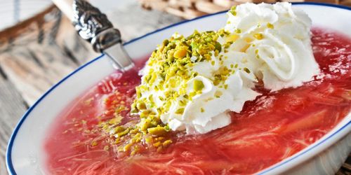 Koka en ljuvlig rabarbersoppa och servera den med en klick vispad grädde och hackade pistagenötter.
