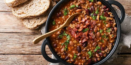 Den här enkla soppan med köttfärs, bönor och potatis är både god och mättande.