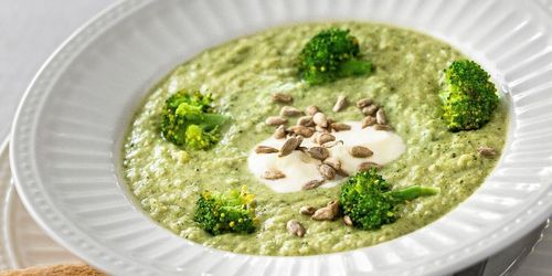 En god, krämig och väldigt omtyckt soppa gör du med broccoli som bas. Toppa soppan med pumpakärnor eller solroskärnor så blir den extra god.